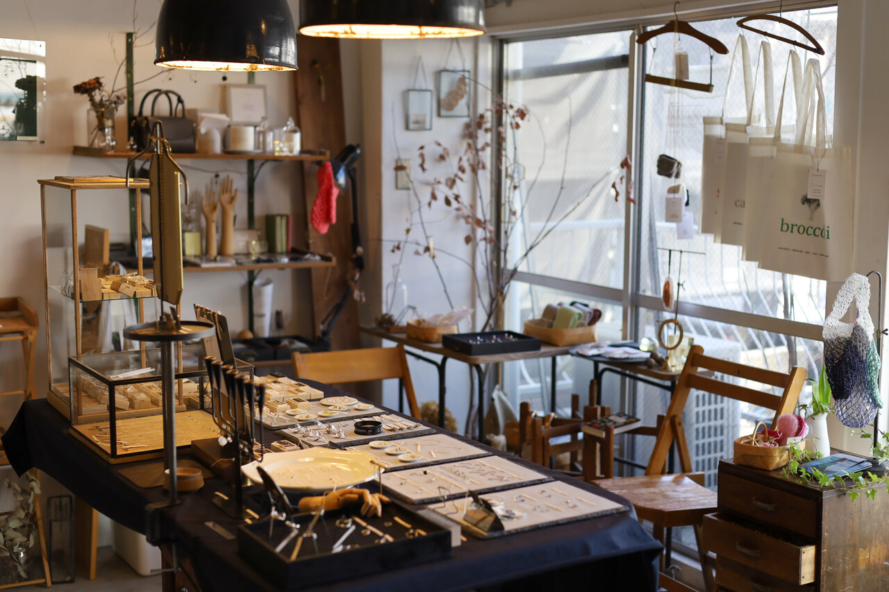 『HELEN HEIJI』では、作家の個性に触れられる展示会やオーダー会といったイベントも定期的に開催されている。筆者が訪れた日は、京都にアトリエを持つジュエリーブランド『ro-ji』の展示会が開催されていた。