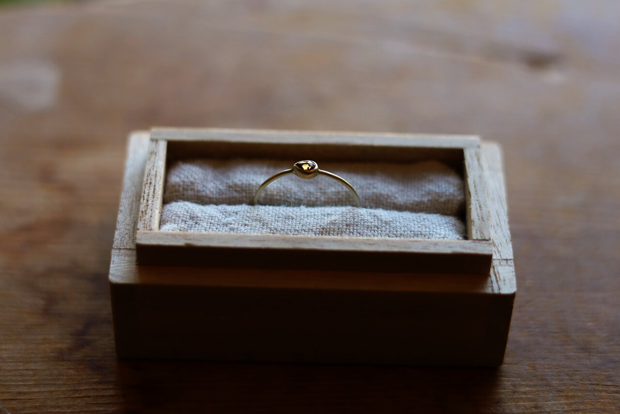 リング、ネックレス、イヤーカフ…と、手元のルーペも使いながら一つひとつ眺めてみる。すべて手作業で生み出されるという『ro-ji』の作品には、アームに刻まれた槌目(金づちで叩きながら入れる模様)や、石の表情を活かしたカッティングなど、細部に職人の体温を感じる。