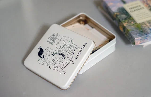 食べた後の缶も、もちろんとっておきたい。モノトーンだからどんなインテリアにも合わせやすく、またカードを入れたり文房具を入れたりしてデスクに置いておけば、いつまでもかわいいイラストが仕事の合間に癒しをくれそうである。