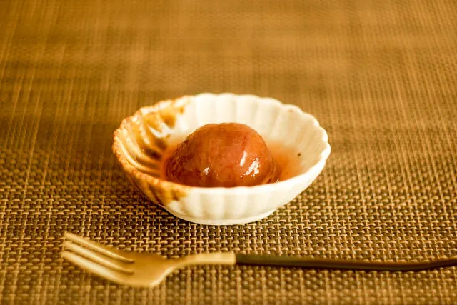 出来上がった渋皮煮は、シロップで艶々して黒い宝石のように美しい。丁寧に作った渋皮煮は上品な甘さで栗の味が強く、栗本来の風味を堪能できる至極の一粒だ。手間と時間をじっくりかけた手仕事の成果を噛み締める瞬間である。