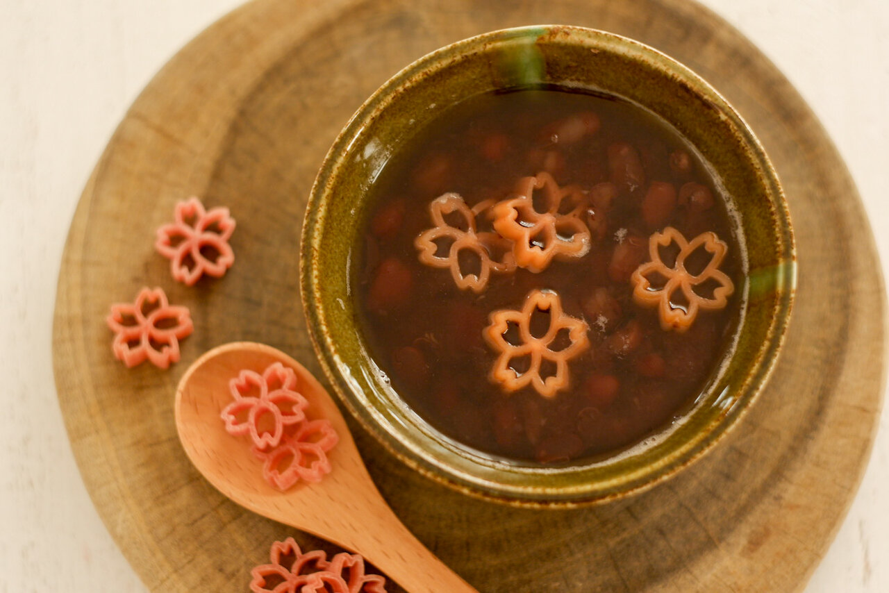日本の象徴とも言える桜のパスタは、おしるこやぜんざいに浮かべてみよう。和スイーツに洋の要素を持つパスタを加えることで、意外性と季節感を演出できる。これから寒さ厳しい冬がやってくるが、お皿に桜を浮かべて春を先取りするのもオツではないだろうか。また合格祈願や就職祈願など「サクラ咲け」と願う勝負所にも活躍してくれそうだ。