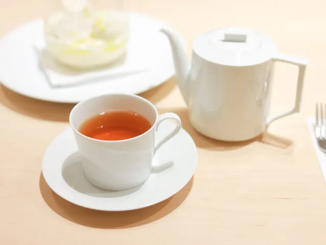 体験としての魅力をさりげなく底上げする存在が、ペアリングとして用意されているブレンドティーだ。半発酵ほうじ茶をベースにルイボスティーをブレンド。ベルガモットやはっさく、ローズマリーなどを重ねた和紅茶は、チーズケーキの爽やかな味わいに寄り添いながら、ほっとする穏やかな香りを添える。