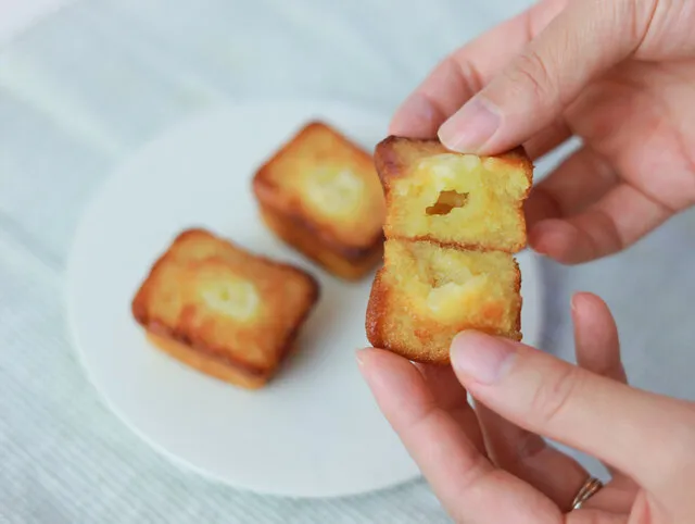 しっとりとした食感に、心地よい旨味、そして香ばしいチーズの香りが重なり合う。「芳醇な香りは、スイーツとしてはもちろん、お酒に合わせるのもおすすめです」と田村シェフ。