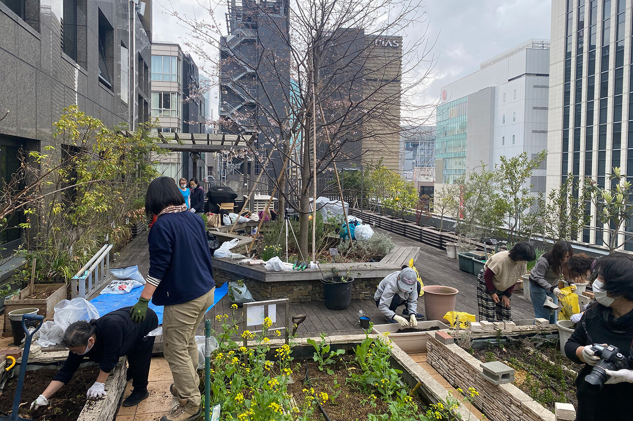 2つ目は都市緑化である。ミツバチの蜜源となる植物を育てるため、銀座のビル屋上に整備した「BeeGarden(ビーガーデン)」にはじまり、ホテルや商業施設、学校などへと広げてきた。これらの屋上は、ミツバチのための場所であると同時に、人と地域がつながる場にもなっている。