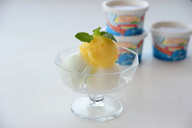 中でも人気を集めているのが、シャーベット系の「瀬戸田のレモン」「瀬戸田のデコみかん®」、そして「伯方の塩」を使ったアイスミルクである。柑橘のシャーベットは、酸味だけが際立つのではなく、果実が持つ自然な甘みがきちんと感じられる仕上がりだ。一方、ミルク系はコクがありながら重たさはなく、いくつでも食べ進めてしまう。
