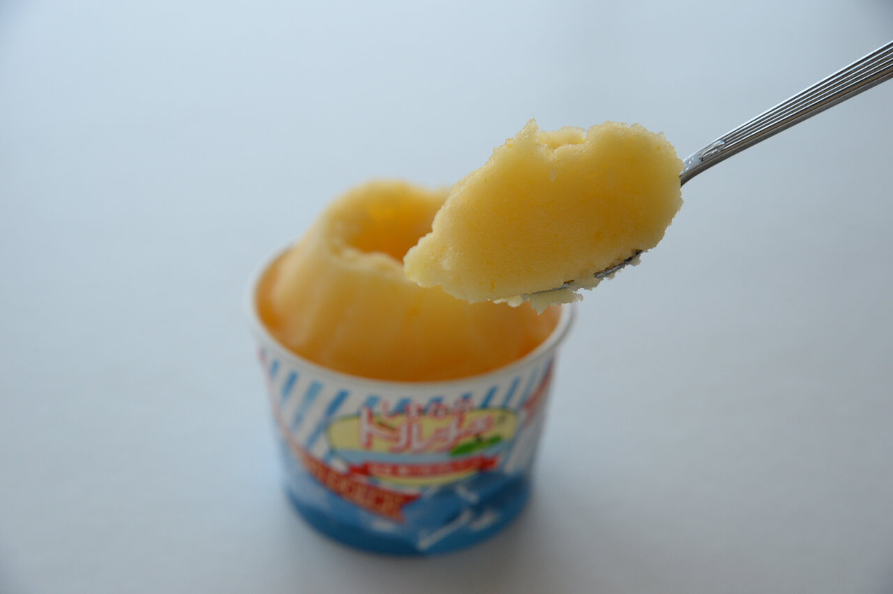 例えば、レモンのシャーベットなら、レモン果汁と砂糖と水だけ。デコポンなら、デコポン果汁と砂糖と水だけでつくることを目指す。香りを強くするための香料や、色を整えるための着色料など、余計なものは極力加えない。