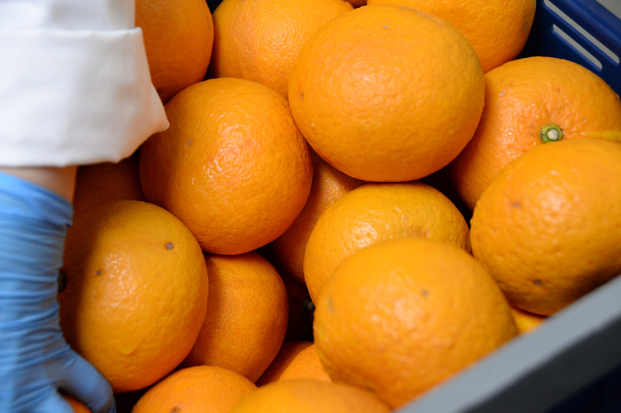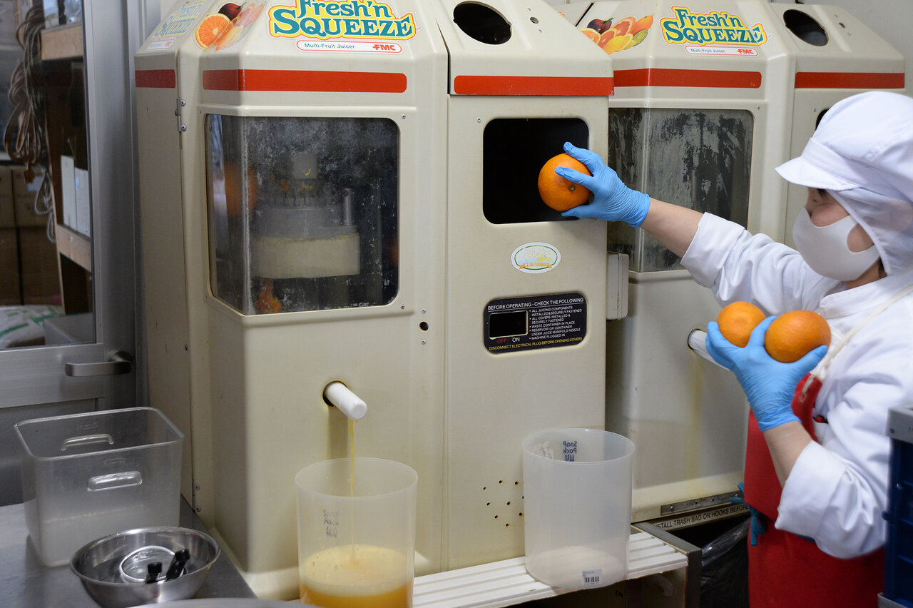 ジェラートに使う柑橘は、旬の時期に搾汁し急速冷凍する。一番おいしい瞬間を閉じ込めた果汁を、毎日必要な分だけ解凍し、ジェラートに加工することで、季節を問わず安定した味を保つことができる。