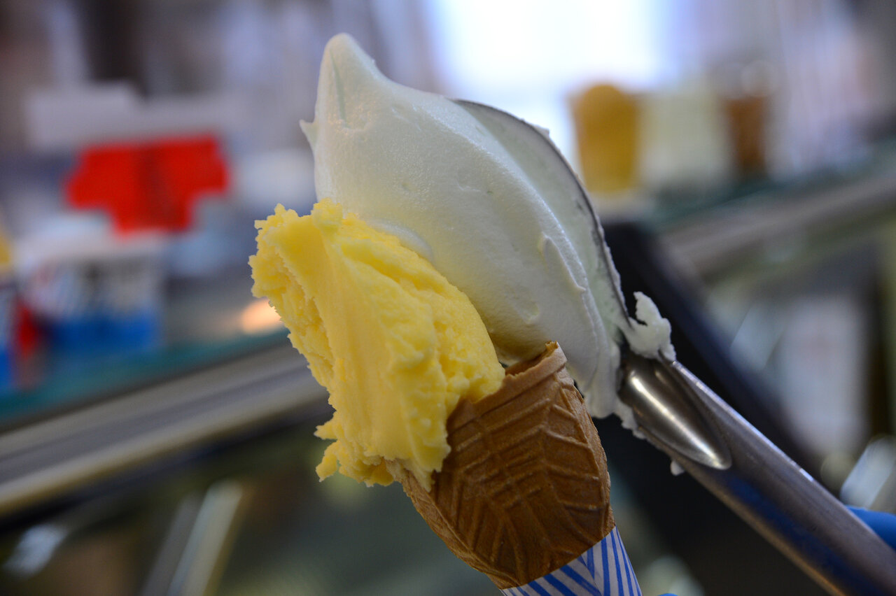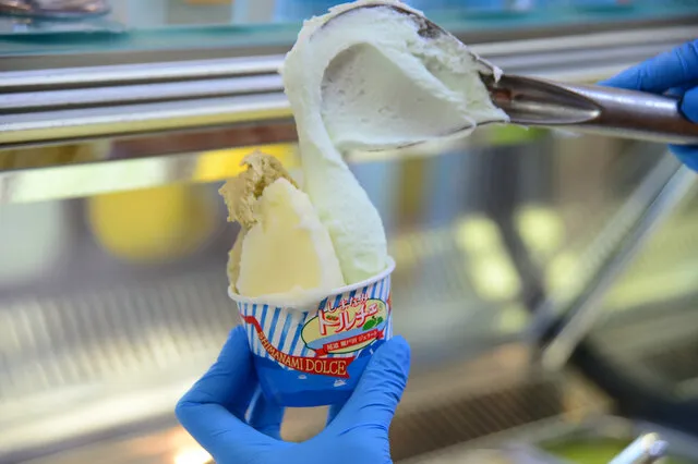 ラインアップは豊富で、シャーベット12種類、アイスミルク24種類の定番商品に加え、季節限定のフレーバーもそろう。ショーケースを前にすると、どれを選ぶか思わず迷ってしまうだろう。