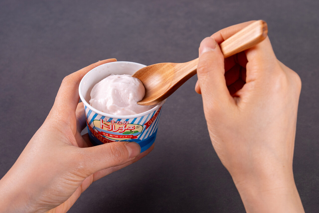 しまなみドルチェのジェラートは、ひと口食べるとまず、果実の味わいがはっきりと感じられる。後味は驚くほど軽やかで、甘すぎることなく、子どもから大人まで幅広い世代に親しまれている。圧倒的なリピーターの多さも、このジェラートの大きな特徴だ。