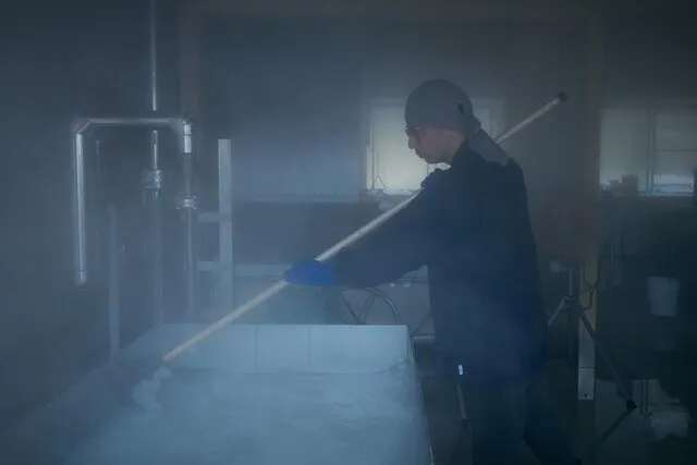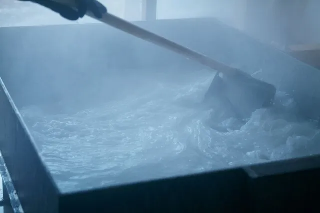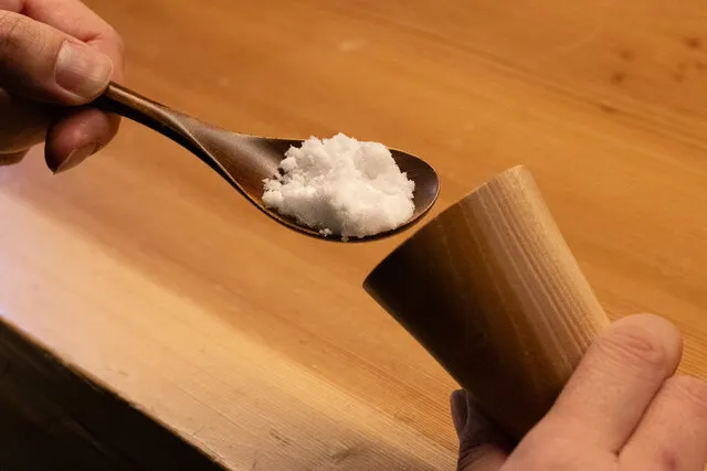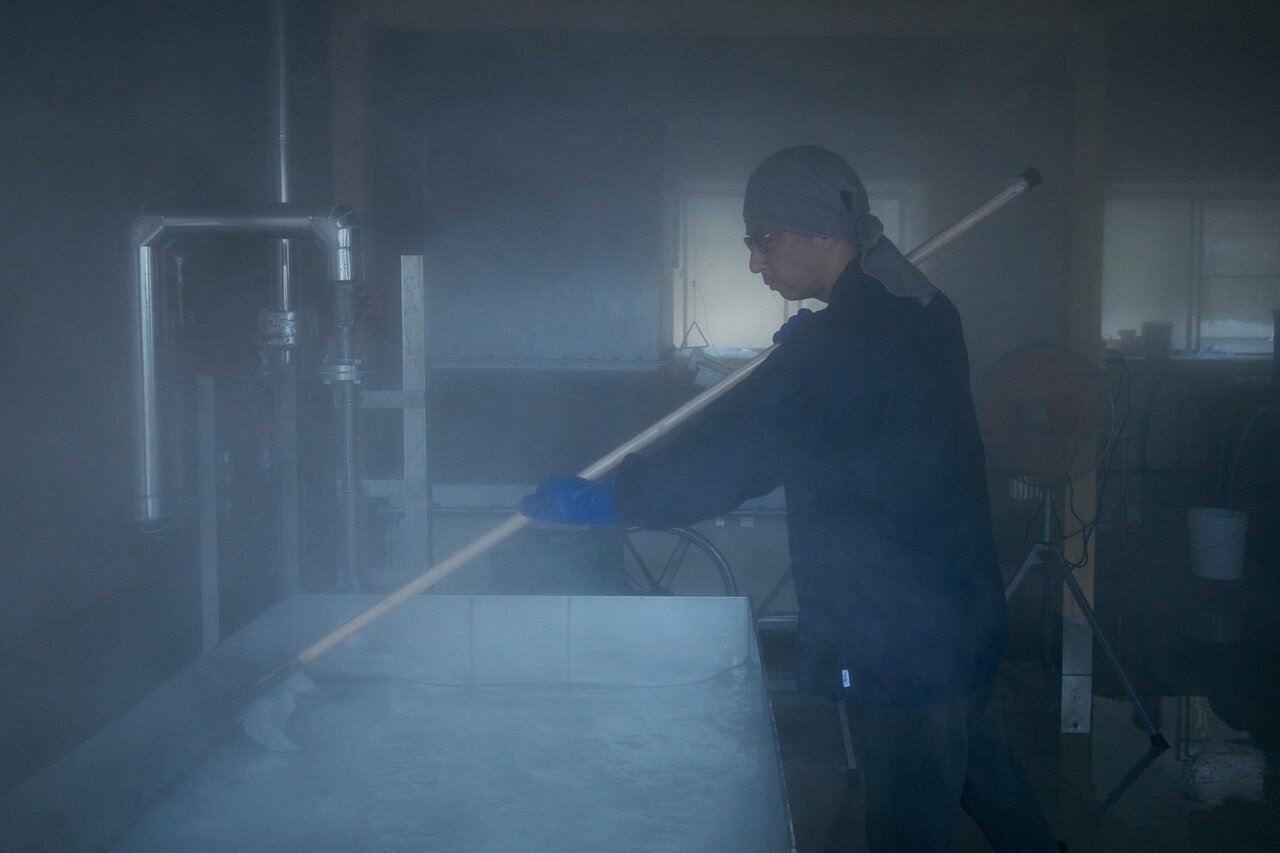 そこまで手間をかけて運ぶ海水は、一度につき約6トン。しかし、そこからできる塩はほんのわずかだ。大量生産はできないものの、その分、一つひとつの工程を人の手で丁寧に行っている。宮島の塩は、こうした手作業の積み重ねから生まれている。