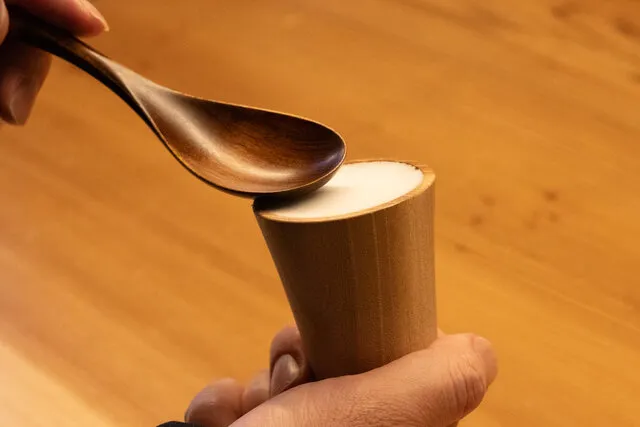 塩を円錐の形に固めるための「固め器」は、宮島にある小林一松堂の3代目 小林 松齋氏が手がけている。自然が育んだ木本来の持ち味を生かした伝統工芸品だ。当初、小林さんからは「作るのは難しい」と一度は断られたという。しかし、川本さんの熱意に押される形で小林さんが試行錯誤を重ね、この美しい円すい形の型を完成させた。川本さんの想いに応えるように、職人の手によって理想の形が現実のものとなったのだ。
