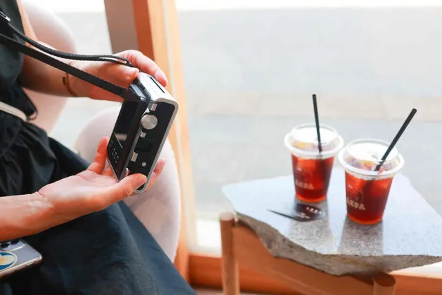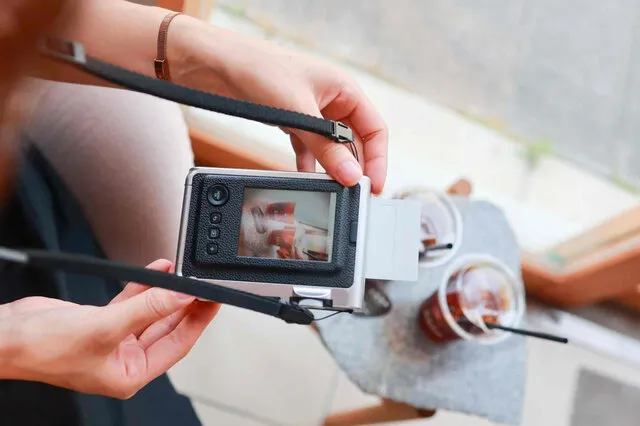 クラシックなフィルムカメラを思わせるデザインは、カメラ好きの心をくすぐる。また、カメラ初心者でも、日常的に身につけたくなるおしゃれさがある。まるでコーディネートの一部として旅やお出かけに連れて行きたくなるカメラ。