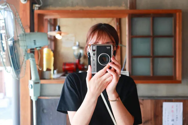 私がこのカメラを手に取ったきっかけは、一眼カメラで美しく記録するよりも、もっと気軽に写真を思い出として残したいと感じたからである。旅先に出かけるときも、近所のカフェに向かうときも、首からさっと下げ、ファインダー越しに日常を切り取る。そんな時間は、仕事でシャッターを切るときとはまったく別の、クリエイティブな気持ちを沸き起こす。気づくと、「instax mini Evo™(チェキ)」と一緒に見たことのない景色を探しに行くつもりで、ワクワクした気分で出かけ、その先で切り取る景色を探しているのだ。