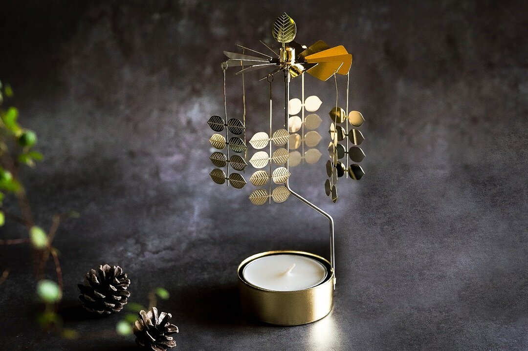 今日は回るロータリーキャンドルホルダーを眺めながら、子供の頃に愛読していた本を取り出し、懐かしい世界に浸ってみようか。金色に輝く光景が目の前に広がって、自分だけの大切な思い出の場所へと連れて行ってくれるだろう。