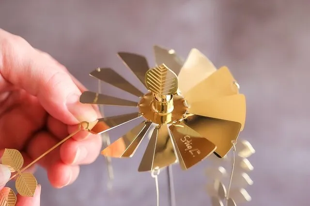 組み立てを終えたら、さっそくキャンドルに火を灯してみよう。ファンや葉っぱのモチーフが炎の光を浴びて黄金に輝き、やがてゆっくりとファンが回り始める。葉っぱが光を反射しながら静かに揺らめきだす…。その夢のような風景を眺めていると、日中に心を惑わせた出来事が静かに消えていくのを感じるはずだ。