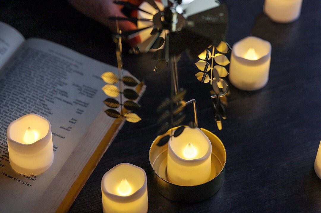 室内で火を扱うのはちょっと…と、キャンドルを使うことにためらいがある方もいるだろう。このロータリーキャンドルホルダーはファンも飾りもとても軽いので、窓辺に置いたりエアコンの近くに置けば自然に回りだす。また明かりが欲しいという方は、カップに収まるLEDのティーライトキャンドルを使用してみよう。