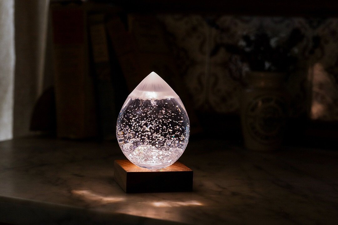 だが季節の移り変わりを感じるのは、きらめく街に出かけるだけでなく、住まいの中でもできるはず。アベリョウコ氏のスノードームは、季節の装飾品としては小さなサイズでスペースも取らず、室内のアクセントとなるプロダクトだ。
