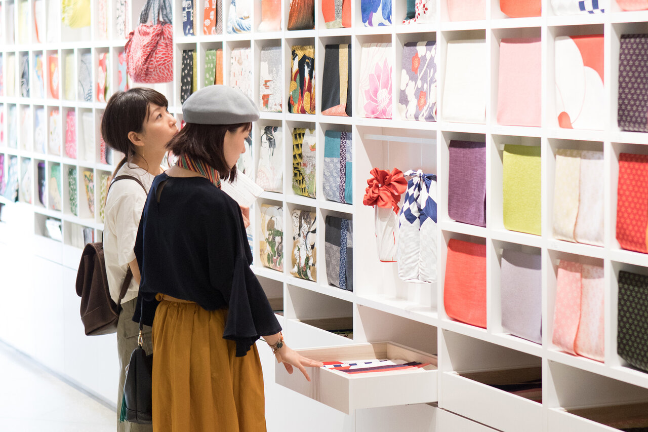 「むす美」のふろしきは幅広い年代に愛され、結び方のワークショップを開けば親子で参加する姿も見られる。また、「FUROSHIKI」として、海外でもインテリアやファッションに取り入れる人たちが世界中で増えつつあるという。