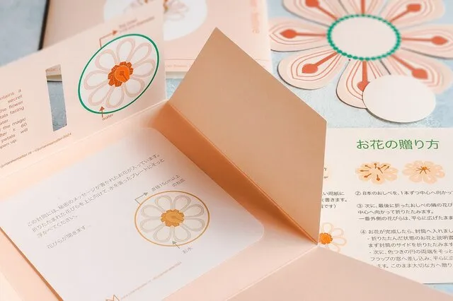 カードの折りたたみ方と、受け取り側が水に浮かべる方法の説明書が付属している
