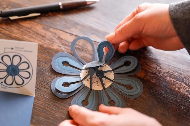 誕生日や記念日、あるいは感謝の言葉を送るためのグリーティングカードは数多く存在するが、Jurianne Matterのマジックフラワーは送り手がメッセージを添えたカードを折り、受け取り手が水に浮かべてカードとメッセージを眺めるという斬新なアイデアを用いている。