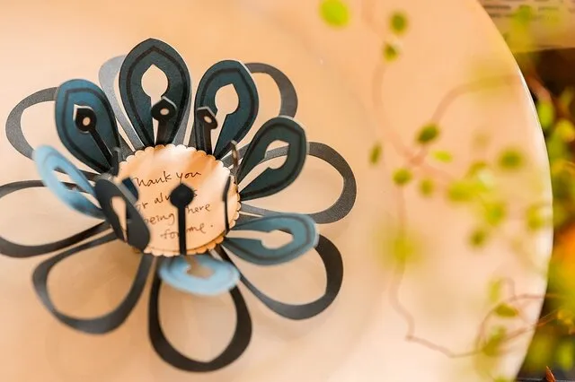 カードにメッセージを書き終えたら花の中に入れ、最初におしべを、次に花びらを中心に向かって一枚ずつ折りたたむ