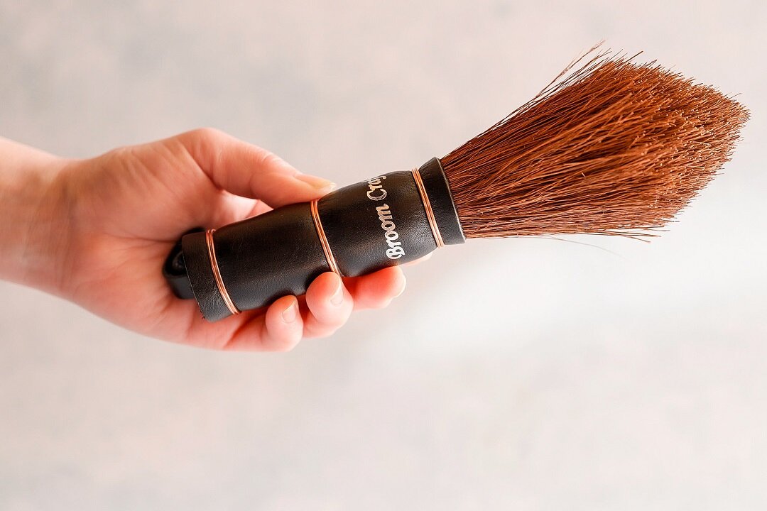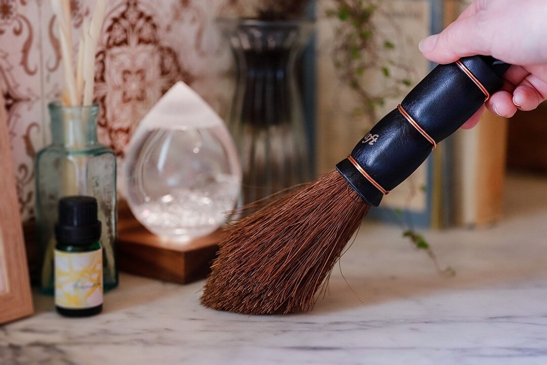 また手帚の持ち手のレザーは手に吸い付くような感触で触り心地が良く、経年変化するのが楽しみとなるほど。丁寧に取り扱えば、ずっと長く持ち続けていけるに違いない。
