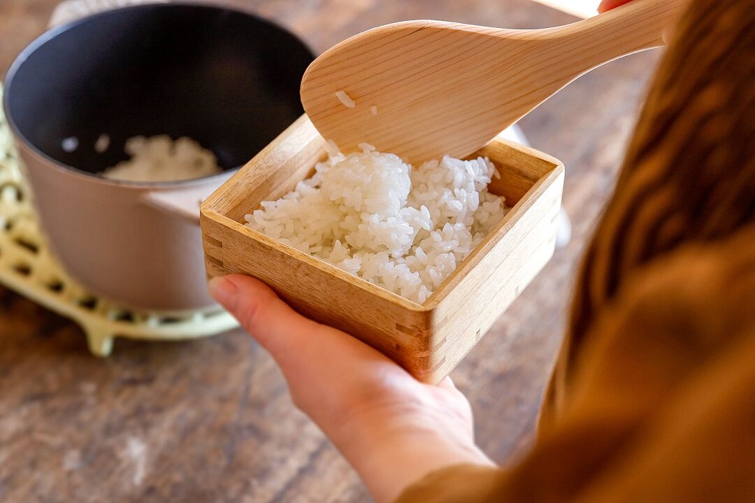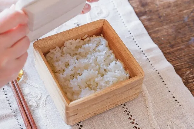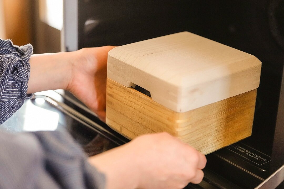 このごはん鉢は調湿効果のある桐で作られているため、吸収していた水分を放出・充満し、内部のご飯を温めてくれる。余分な熱と蒸気は蓋のすき間から適度に放出、パサついたり水分過多になったりせず、炊きたてのようにふっくらご飯に蘇るのだ。