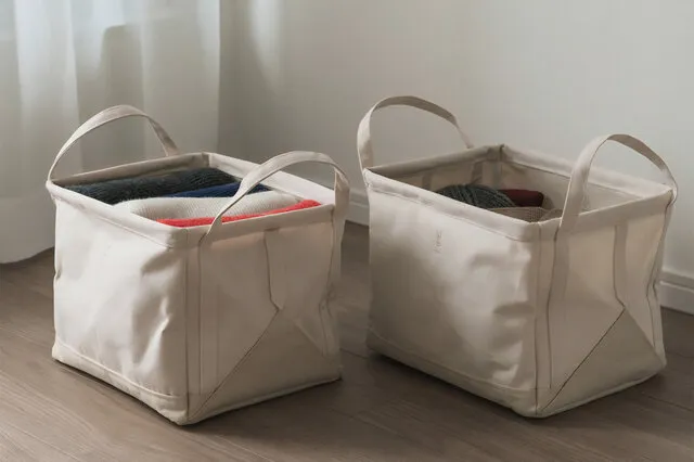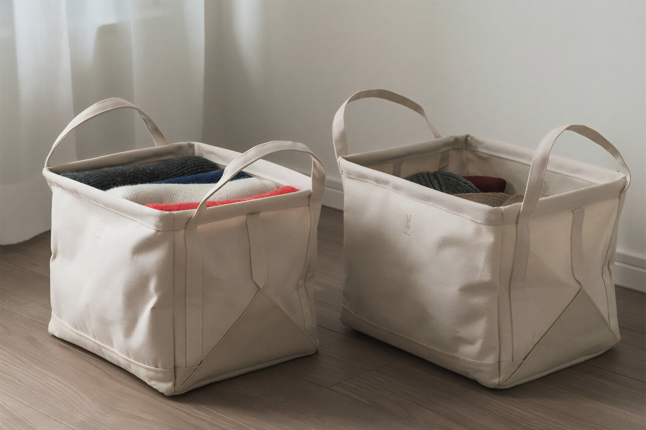 隠す収納から、隠さない収納へ。持ち手付きで、来客時もさっと移動できる